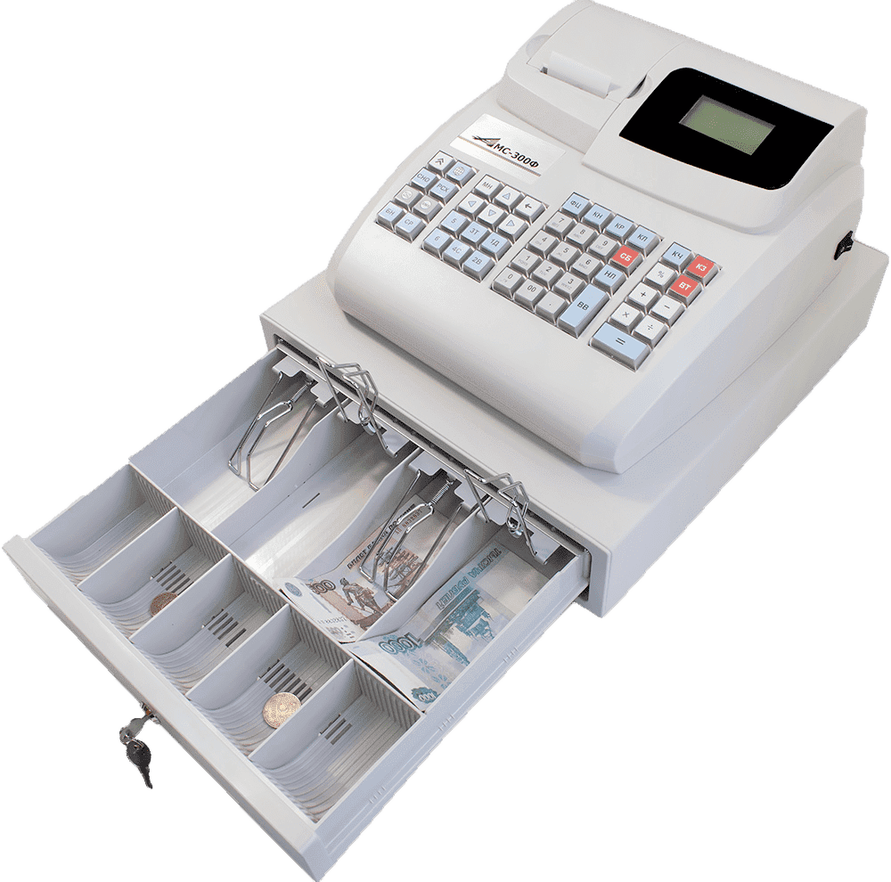 В стоимость аппарата включен электромеханический денежный ящик с четырьмя отсеками под банкноты и пятью ячейками для монет.
