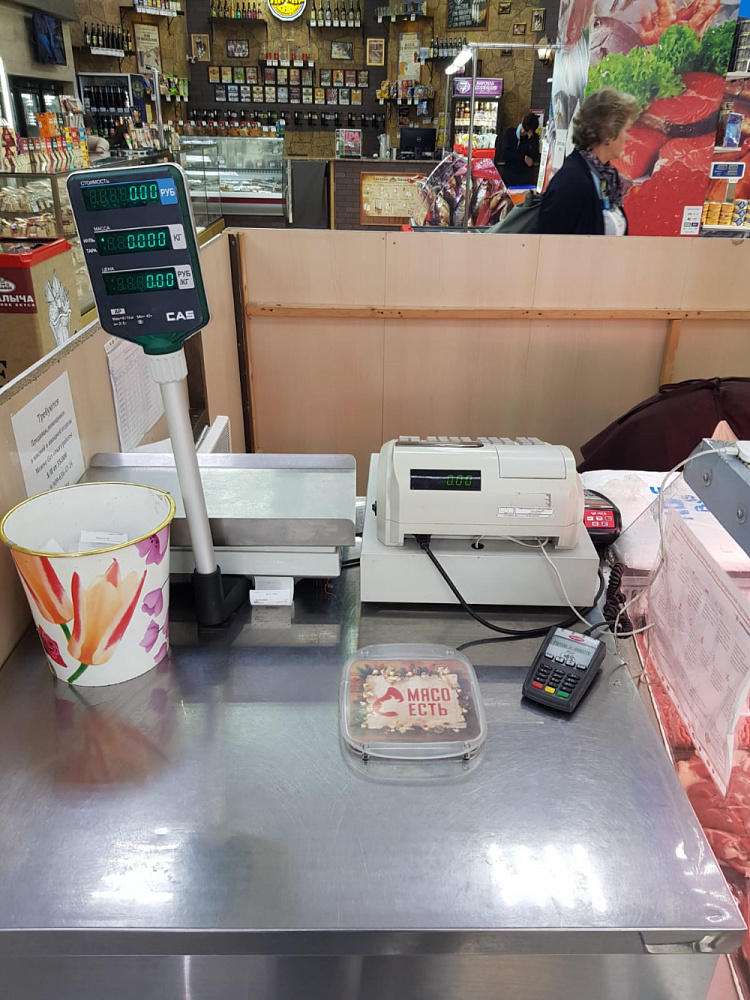 Встроенный денежный ящик несомненный плюс кассы, не пришлось приобретать его отдельно, докупили лишь терминал для оплаты по карте и весы. Простая в использовании работаем на ней не первый год, разве что сейчас стали кнопки плохо нажиматься. Для нашего мясного отдела вполне подходит, мне касса нравится