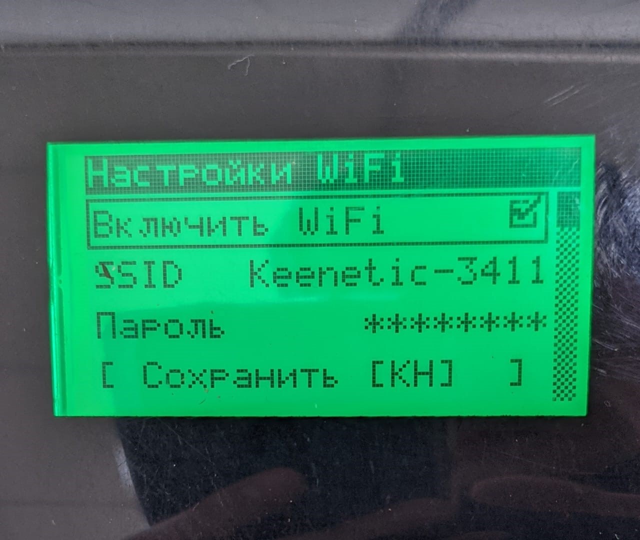 • Напротив надписи Включить WiFi должна стоять галочка, как показано на фото. Если галочка отсутствует, то нажмите: [<--] - [ВВ]