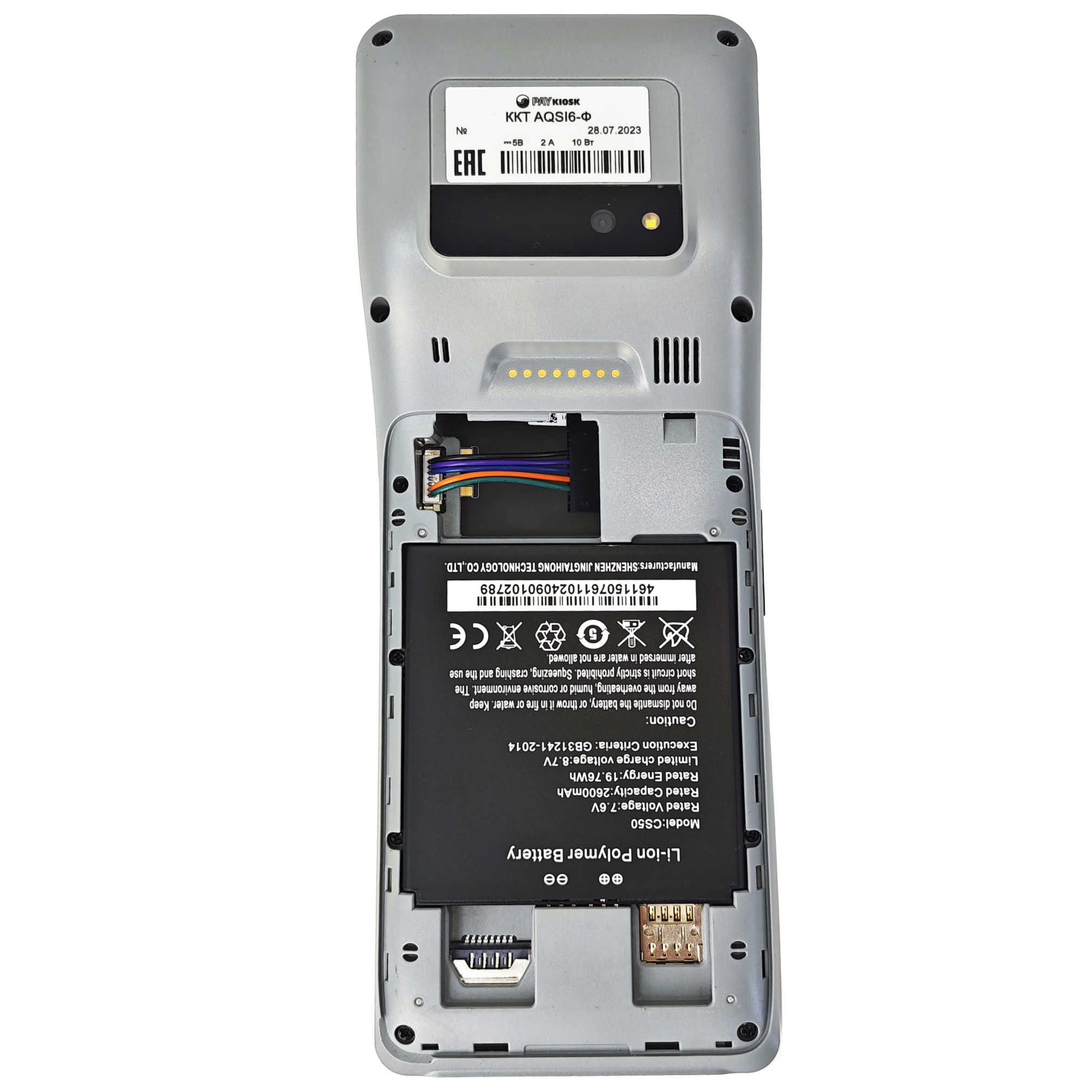 ширина чека 57 мм маркировка Bluetooth MIC SIM USB Type С WiFi micro SD аккумулятор скорость печати 90 мм/с 5.5 дюймов microSD есть, совмещенный с Sim
