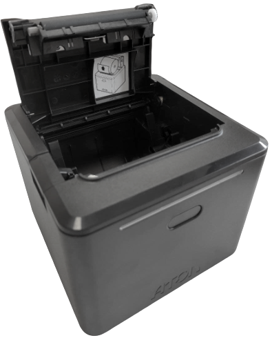 Оснащен автоматическим обрезчиком чековой ленты.