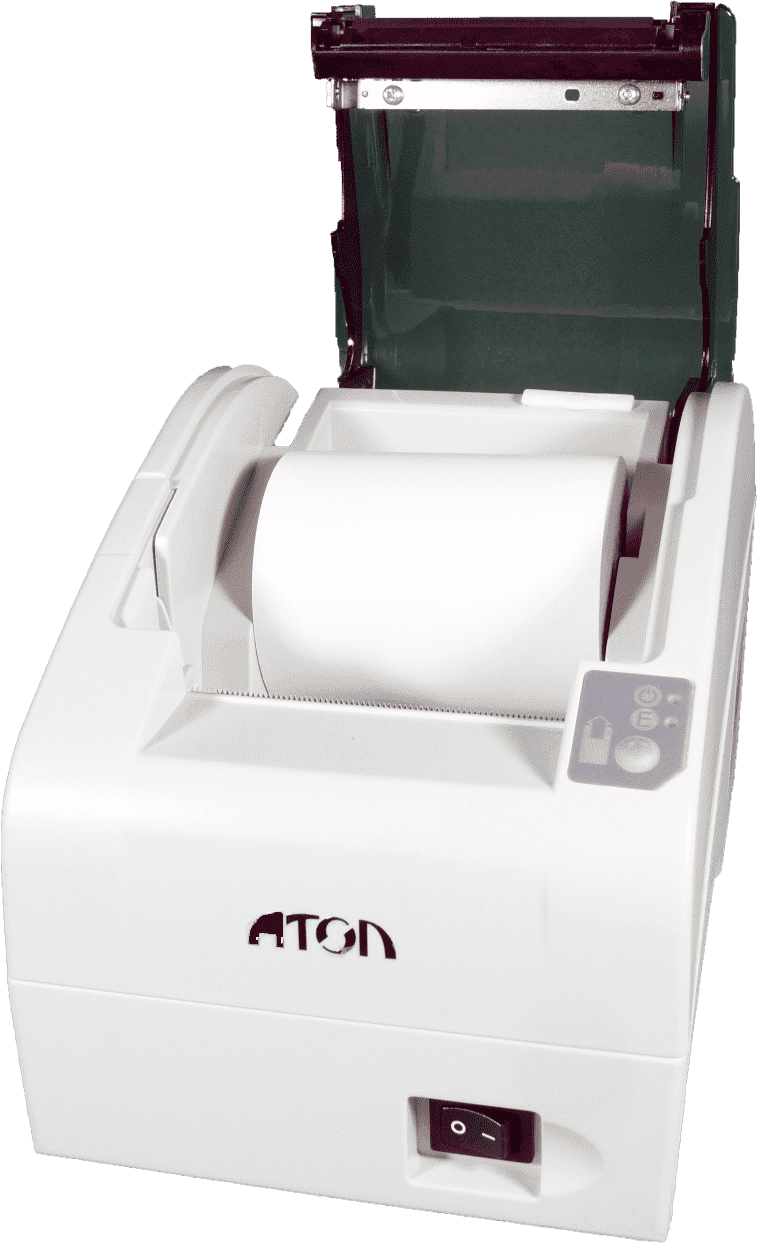 Поддерживает печать на чековой ленте любого размера: экономичных 44 и 57 мм, и широкой: 80 мм. Переход с ленты на лену происходит с помощью переходников в комплекте.