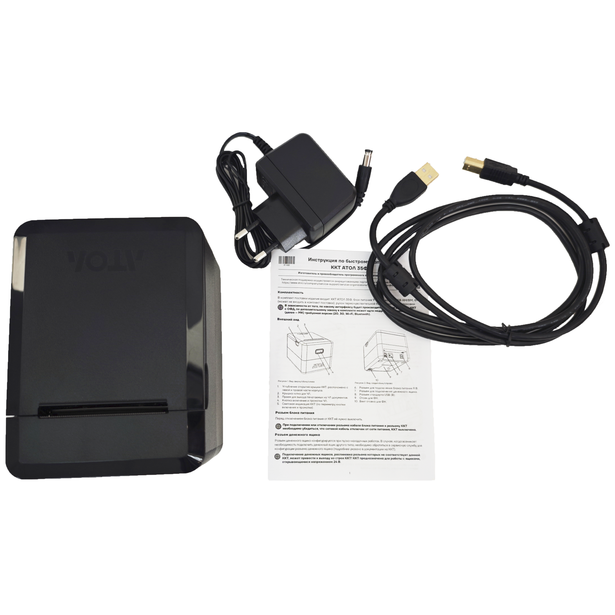 Адаптер питания / Краткое руководство по эксплуатации / Термобумага 57 мм / Кабель USB