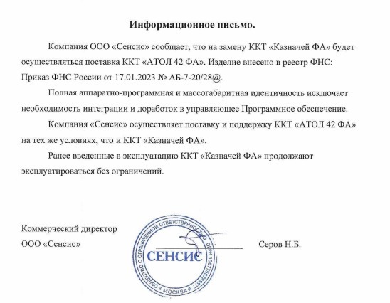 Атол 42ФА (Казначей ФА) c ФН на 15 месяцев картинка от магазина Кассоптторг