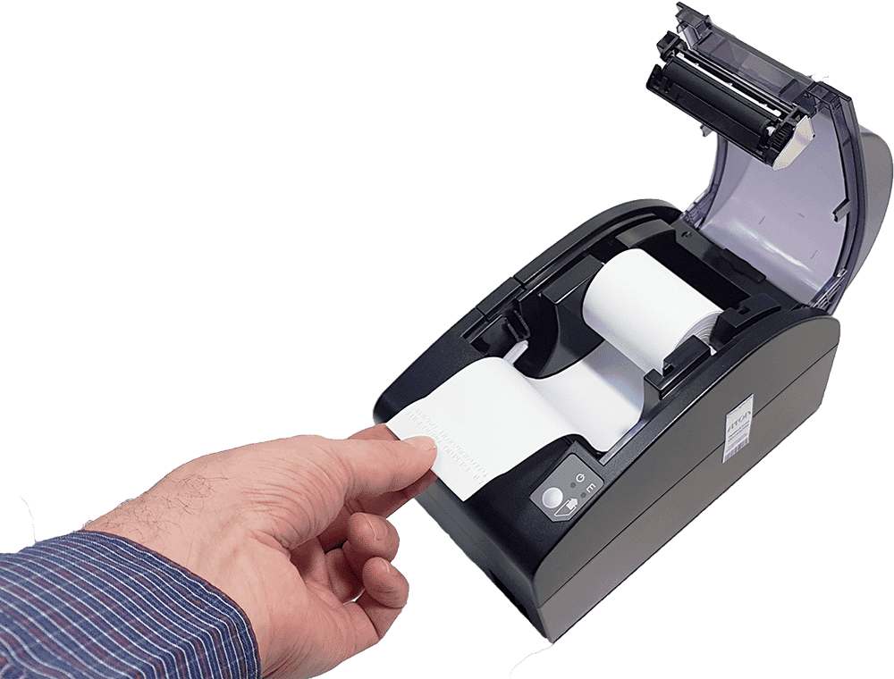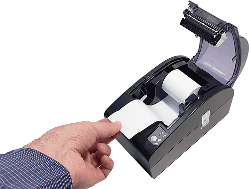 на задней панели имеются углубления для крепления фискального регистратора на горизонтальные поверхности. Через прозрачную верхнюю крышку кассиру легко контролировать количество чековой ленты.