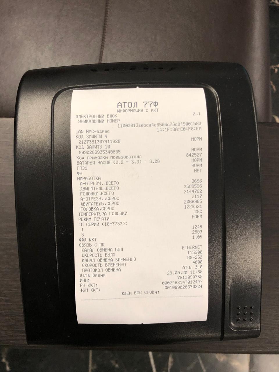 • Атол Драйвер ККТ Печать информации о ККТ