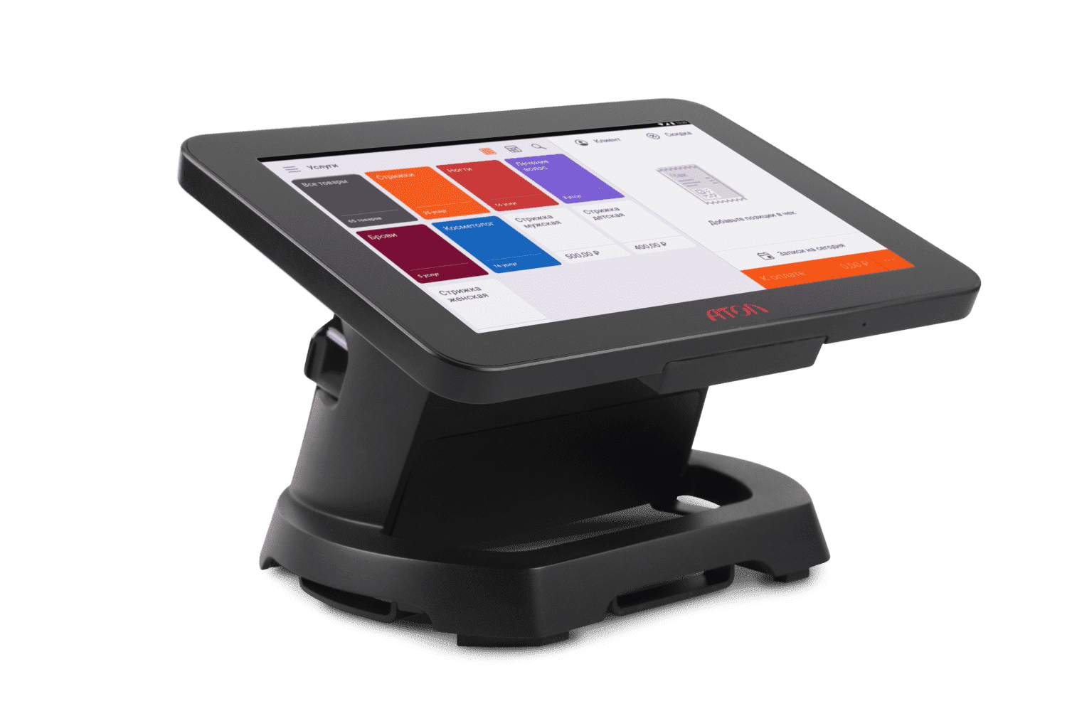 Смарт-терминал представляет собой полноценный планшет, здесь уже установлен драйвер Атол для настройки онлайн-кассы. Кассовое ПО на смарт-терминале представлено в виде трех предустановленных кассовых приложения Qasl, разработанных специально для каждого вида бизнеса (Торговли, Услуг, Общ.питания).