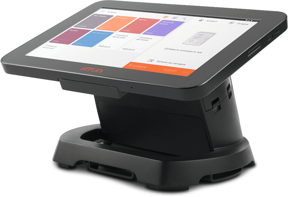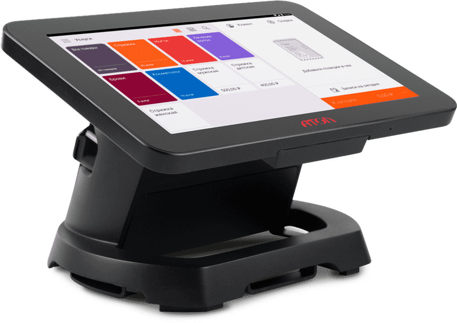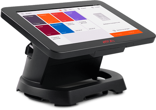 Корпус из качественного пластика - черный, матовый - не изменит внешнего вида долгое время. Планшет горизонтальной ориентации с диагональю 8 дюймов. Разработана для стационарной торговли. Прорезиненные ножки надёжно удерживают кассу на поверхности - не скользят.
