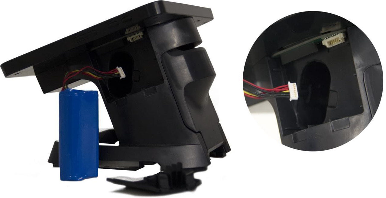 Работает от блока питания либо от опционального аккумулятора. Заряда хватает до 3 ч. автономной работы (при условии 1 чек в 5 мин). Отсек для аккумулятора находится сбоку рядом с разъемом для фискального накопителя. Крышка отсека не требует вскрытия, легко снимается, это облегчает задачу при первичной установке (замене) фискального накопителя. Слоты SIM и карты памяти находятся под защитной крышкой спереди под планшетом. Встроенный принтер печатает со скоростью 100 мм в секунду, есть автоотрезчик. Яркая печать. Функция короткого чека для экономии бумаг.