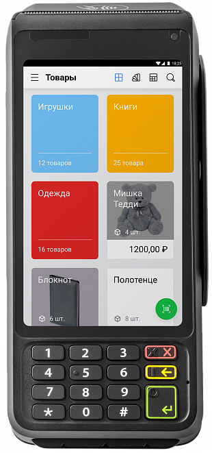 Мощный процессор для быстрой обработки операций; Цветной дисплей для удобного отображения информации; Возможность подключения к сети и периферийным устройствам через USB и Ethernet; Расширенная память для хранения большого количества товаров и операций.