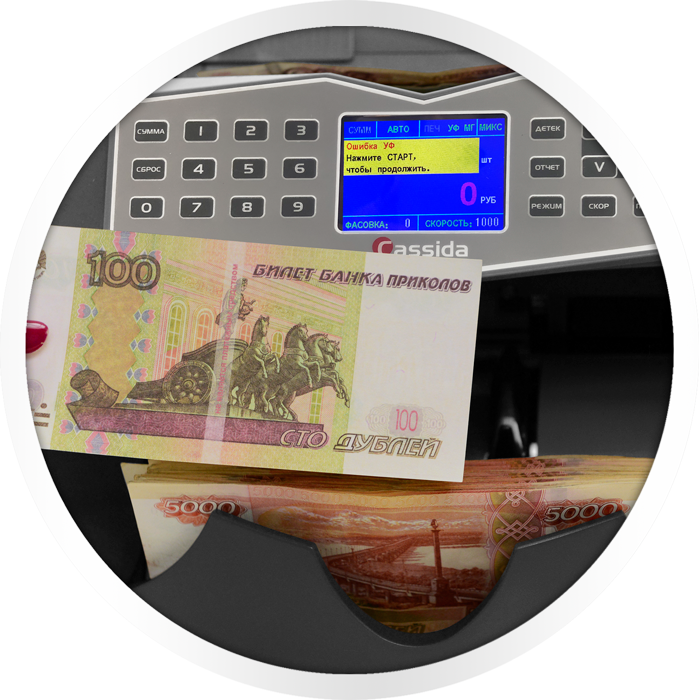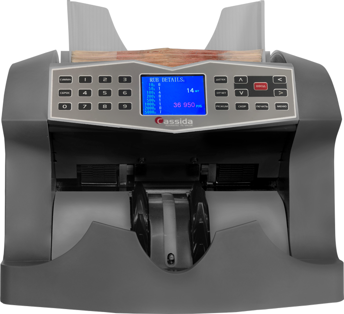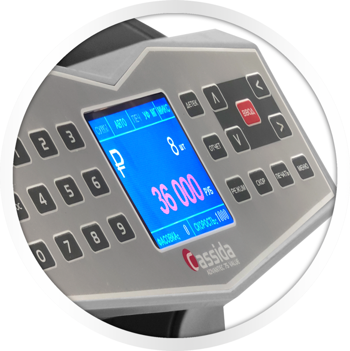 Профессиональный счетчик банкнот Cassida Advantec 75 Value с функциями детектора, которые проводит контроль подлинности следующими методами: