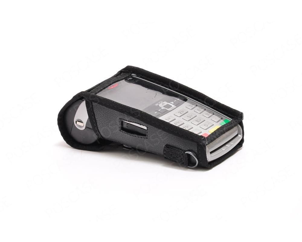 Чехол выполнен из экокожи. Экран и кнопки терминала защищены прочной пленкой. Чехол имеет технологическое отверстие для выхода термобумаги, а также вырезы для зарядного устройства и для отсека для приема карт с чипом.
