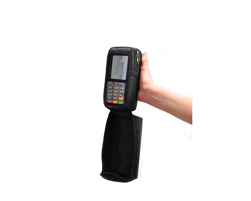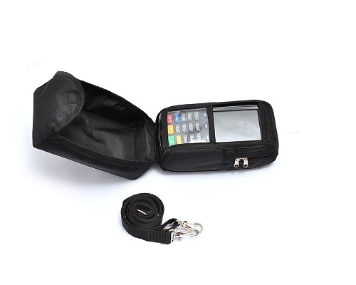 Защитный чехол выполнен из прочной и влагоотталкивающей ткани оксфорд. Экран и кнопки терминала закрыты плотной пленкой.