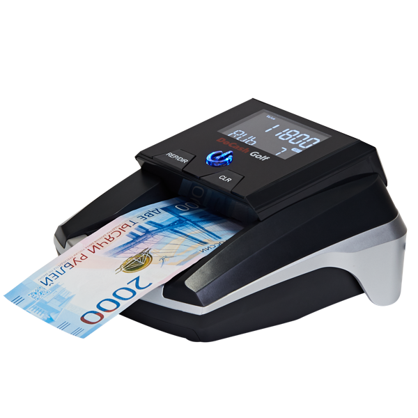 Отличный, надежный и компактный детектор банкнот DoCash Golf. Распознает только российские рубли. Детектор распознает фальшивку с помощью 7 методов детекции. Может распознавать номинал и подсчитывать итоговую сумму. Работает от аккумулятора.