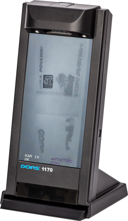 Простой и компактный детектор банкнот DORS 1170 Light с 7" ЖК дисплеем. Применяются следующие технологии проверки подлинности: Спецэлемент М, IR: контроль ИК защиты, AS: антистокс-контроль. Можно проводить проверку не по одной купюре, а веера из купюр.