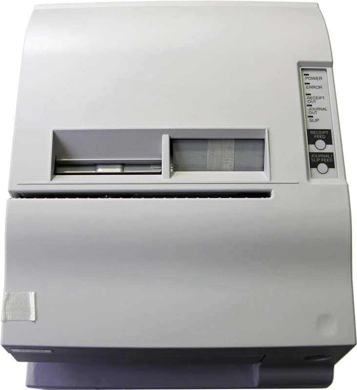 Чековый принтер с матричной печатью EPSON TM-U950P с автоотрезчиком. Поддерживается ОС Windows и Linux. Есть порт LPT и RJ-11. Отличный многофункциональный принтер от EPSON. Печатает чеки и бланки. Будет отлично выглядеть в любом офисе или банке.