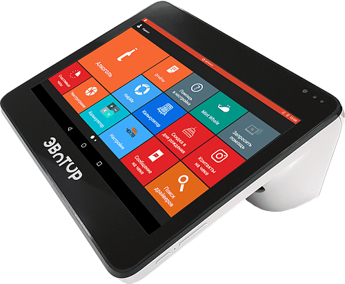 Новый кассовый аппарат Эвотор 10 Смарт Терминал - онлайн касса последнего поколения, созданная на основе планшета. Технические характеристики и максимально большой экран в линейке позволяют с использовать ее в кафе и ресторанах: пробивать необходимые позиции меню можно с максимальным удобством. Еще один плюс – респектабельный внешний вид, в том числе, из-за отсутствия проводов.