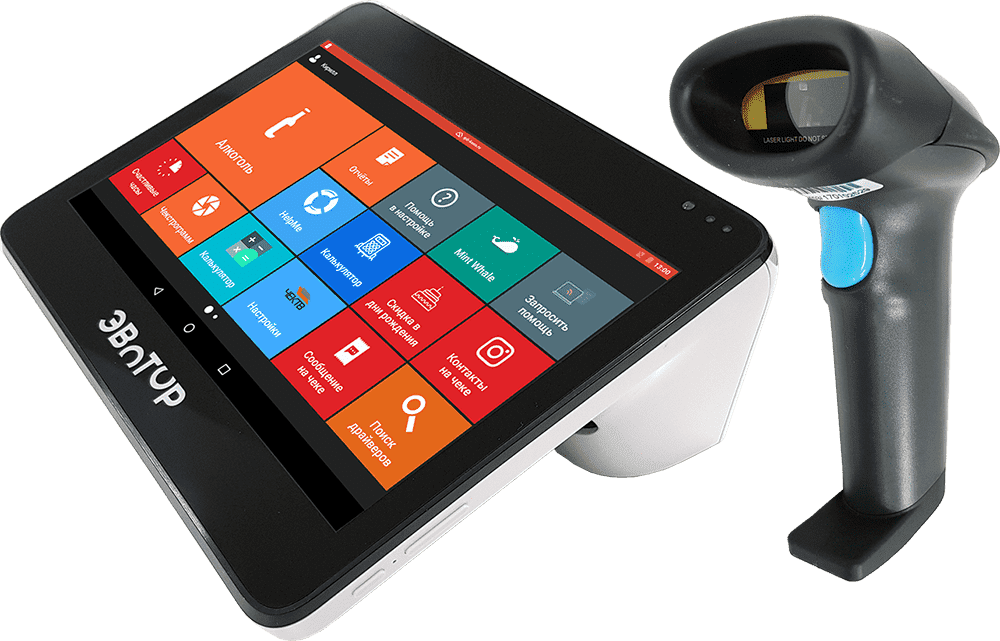 Онлайн касса с возможностью работать автономно, подходит для работы с ЕГАИС с помощью встроенного приложения и 2D сканера штрих-кодов.