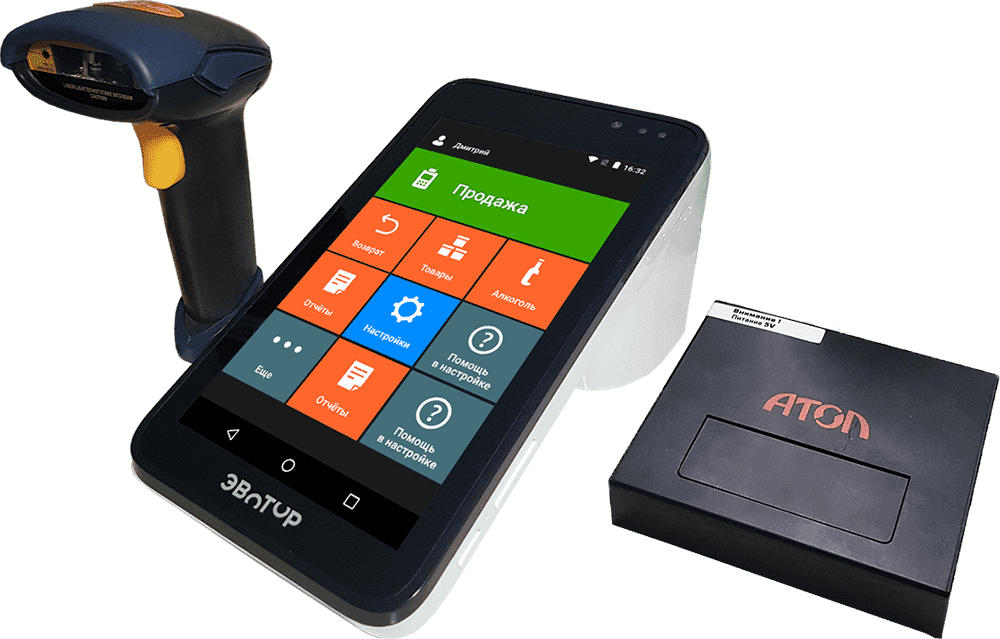Обновленный Эвотор 7.3 Алко Лайт с 2D сканером штрих-кода, блоком УТН для ЕГАИС и возможностью установки ФН, имеет встроенный аккумулятор отлично подойдет для работы с ЕГАИС.