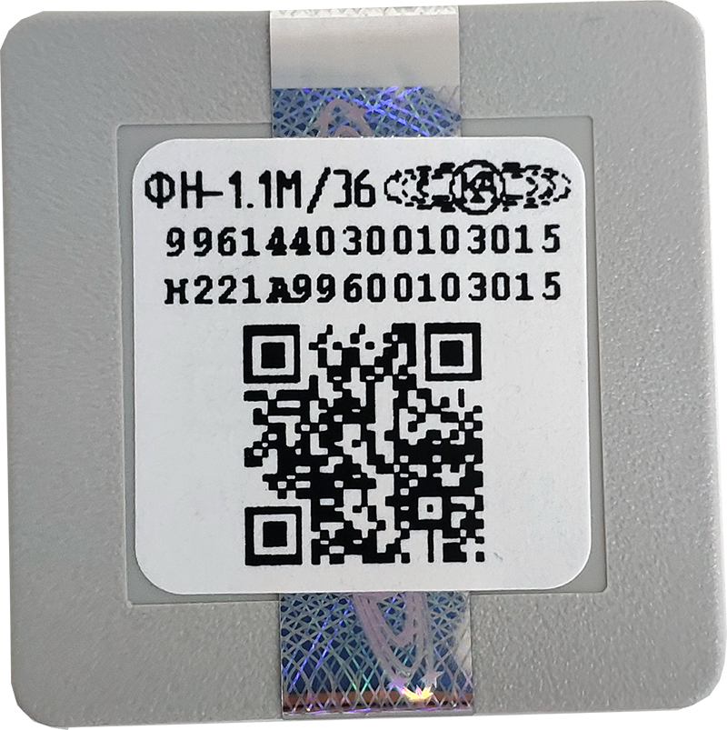 Фискальный накопитель сроком использования 36 месяцев поддерживает формат фискальных данных ФФД 1.2 и маркировку товаром.