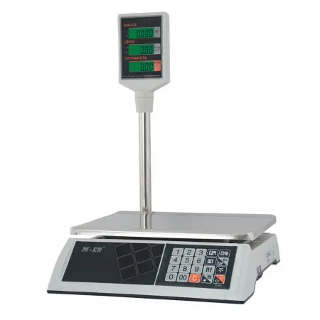 Торговые настольные весы M-ER 327 ACP "Ceed" LCD работают до 90 дней на одном заряде аккумулятора. Допустима перегрузка в 5 раз. Доступны режимы суммирования и учета массы тары, а так же счетный режим. Есть возможность работы с запрограммированными ценами. К весам прилагается вертикальная стойка с дополнительным дисплеем.