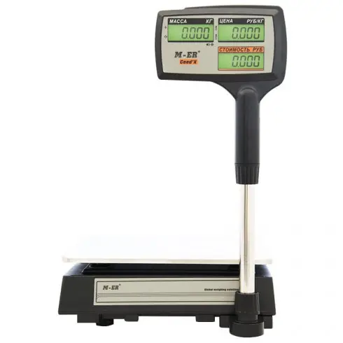Торговые настольные весы M-ER 327 ACPX "Ceed'X" LCD работают до 90 дней на одном заряде аккумулятора. Допустима перегрузка в 5 раз. Доступны режимы суммирования и учета массы тары, автоматического расчета сдачи, а так же счетный режим. Есть возможность работы с запрограммированными ценами. К весам прилагается вертикальная стойка с дополнительным дисплеем.