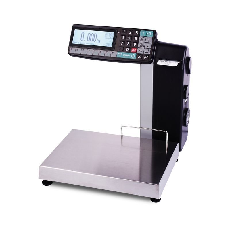 Торговые весы с принтером этикеток МАССА-К MK-15.2-RL10-1 с памятью товаров до 20000. Могут печатать 8 типов штрих-кодов и регистрировать товароучетные операции. К весам можно подключить сканер штрих-кода(MJ-4209, АТОЛ SB-1101, Datalogic QuickScan Lite QW2100 и др.). Весы могут работать в режимах суммирования и сравнения(компараторный). Есть возможность учета массы тары до 6 килограмм. Связь с внешними устройствами осуществляется через интерфейсы RS-232, Ethernet, USB.
