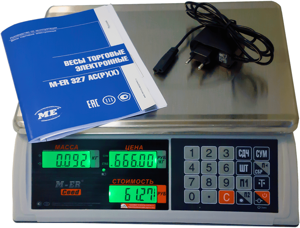 Автономные весы с аккумулятором и металлической платформой Mercury ER 327 AC, принимающие груз до 15 кг. Точные (точность третьей степени по ГОСТ) автономные весы Mercury ER 327 AC работающие от аккумулятора с товарами весом от 50 грамм до 15 килограмм. Имеют встроенную память на две позиции товаров.