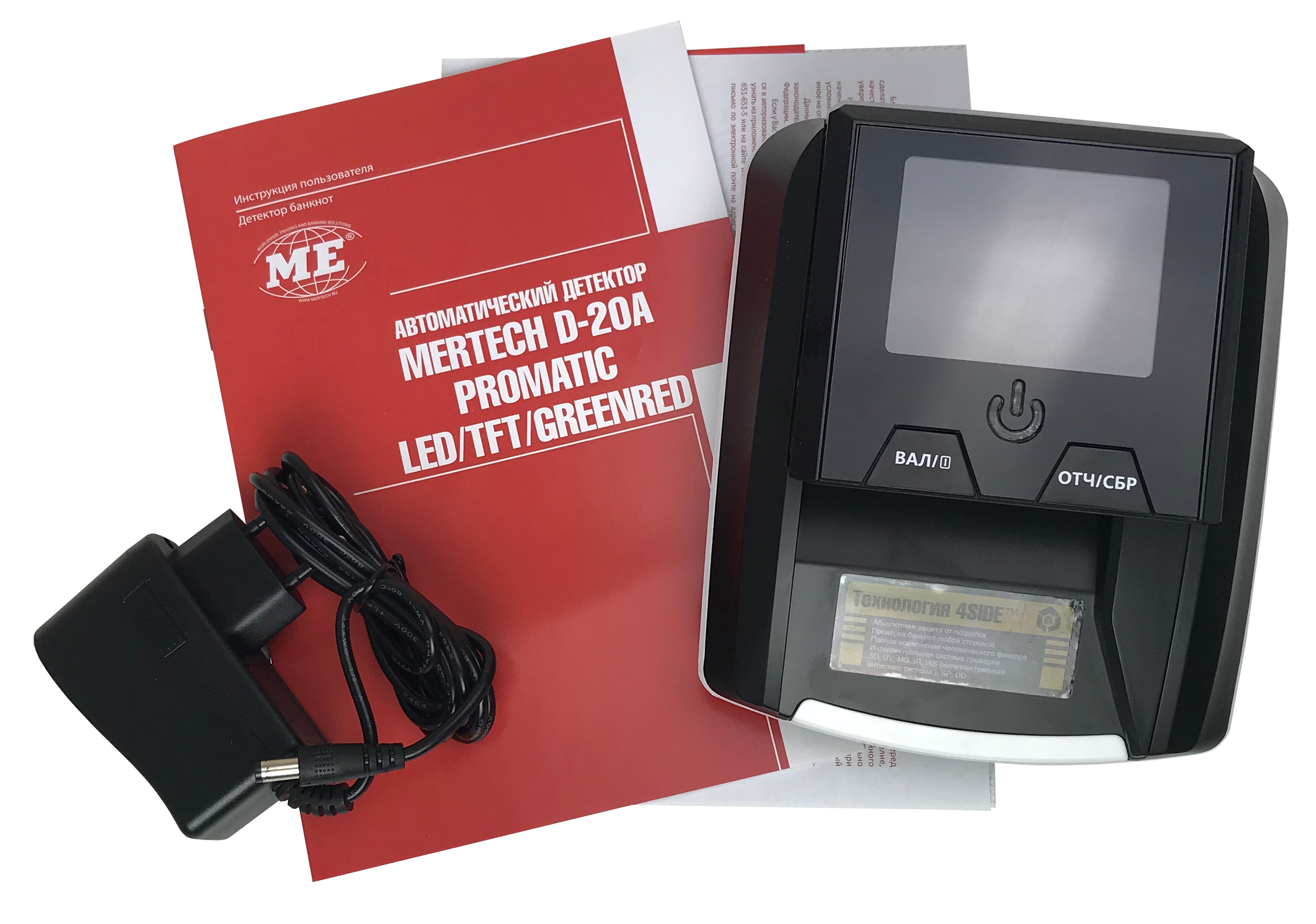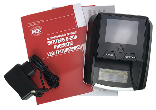 Mertech D-20A Promatic TFT - это автоматический детектор банкнот со встроенным аккумулятором и TFT дисплеем. Контроль подлинности осуществляется с помощью 5 видов детекции. Детектор работает с рублями, евро и долларами, а время анализа купюры составляет 0,5 секунды. Заряда аккумулятора хватит на 9 часов работы.