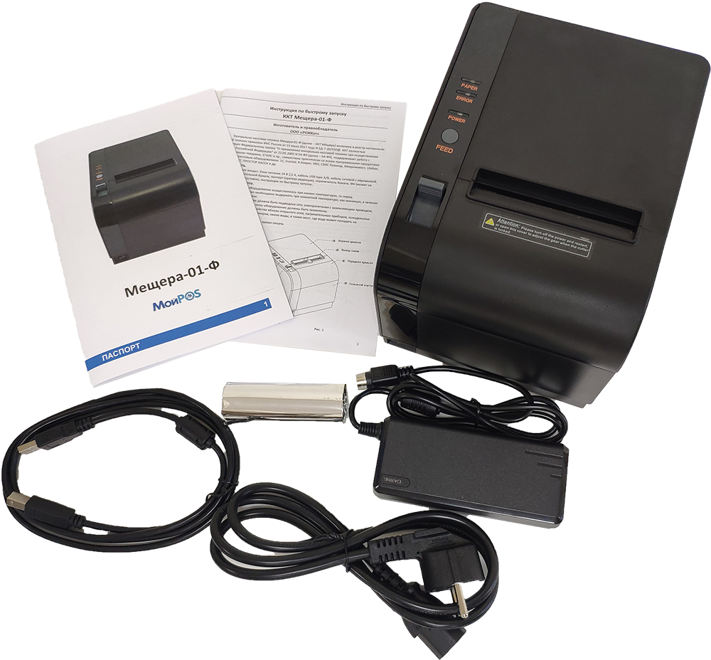 Адаптер питания / Краткое руководство по эксплуатации / Кабель USB / Термобумага 80 мм / Паспорт