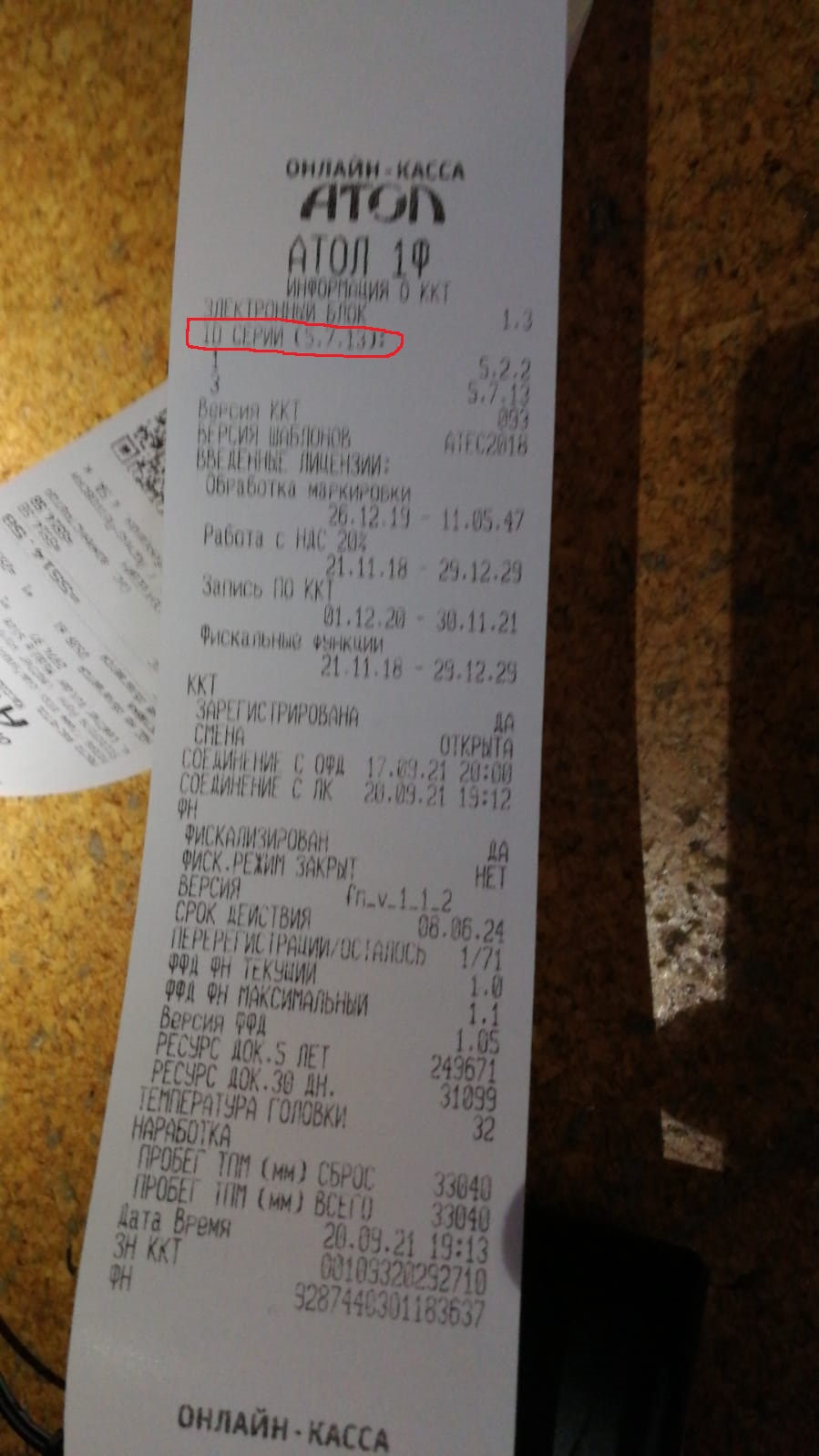 Если цифры начинаются на 10-ХХ, тогда НДС 20 процентов и безнал есть, но это платформа 2.5 и нужно переводить ее на платформу 5.0. И чтобы перейти на платформу 5.0 нужно заказать новую прошивку - ее можно легко установить автоматом (можно онлайн). Если 10-ХХ нет, и при этом ФФД 1.05, то нужно обновиться до прошивки 7020 и заказать 5-ю платформу. А чтобы обновиться до 7020 - это лучше к нам вести кассу - самому будет очень сложно разобраться. -