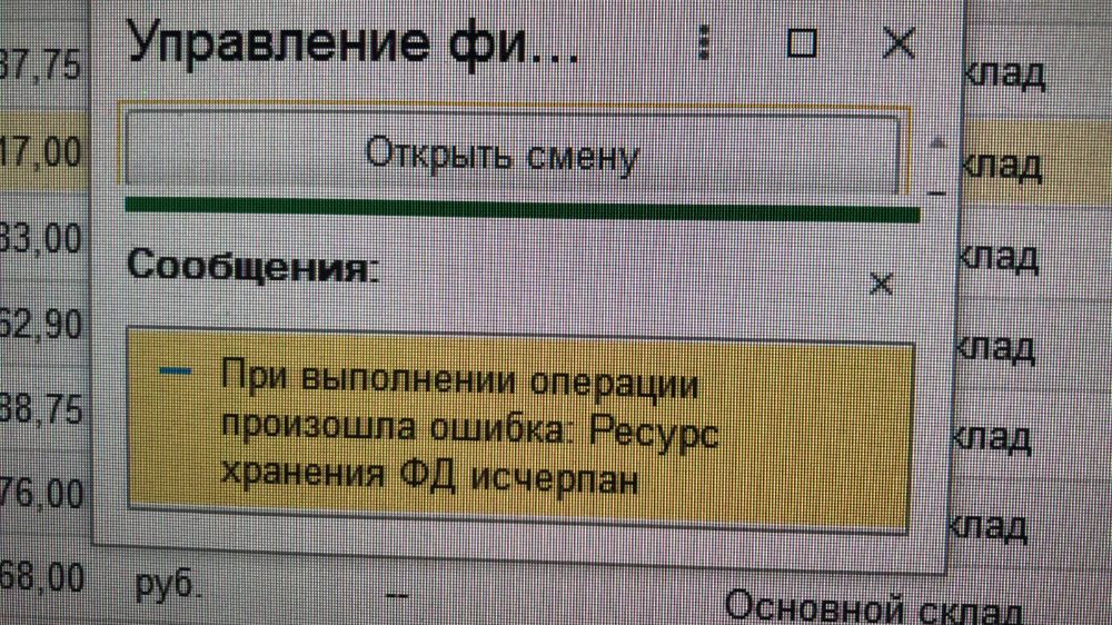 Произошла ошибка: Ресурс хранения ФД исчерпан