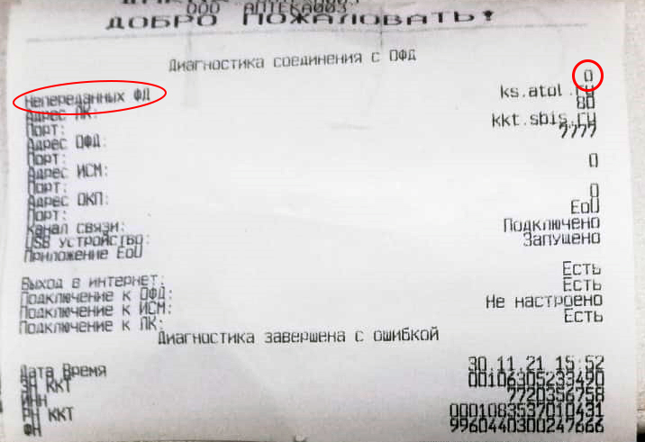 - Если там стоит 0, значит все данные переданы - то есть касса подключена к ОФД и передает данные.