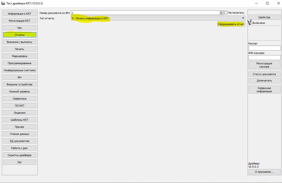 Для этого:- зайдите в Тест Драйвера ККТ;