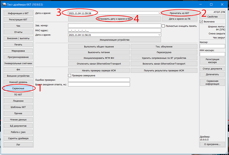 Для этого:- зайдите в Тест Драйвера ККТ;