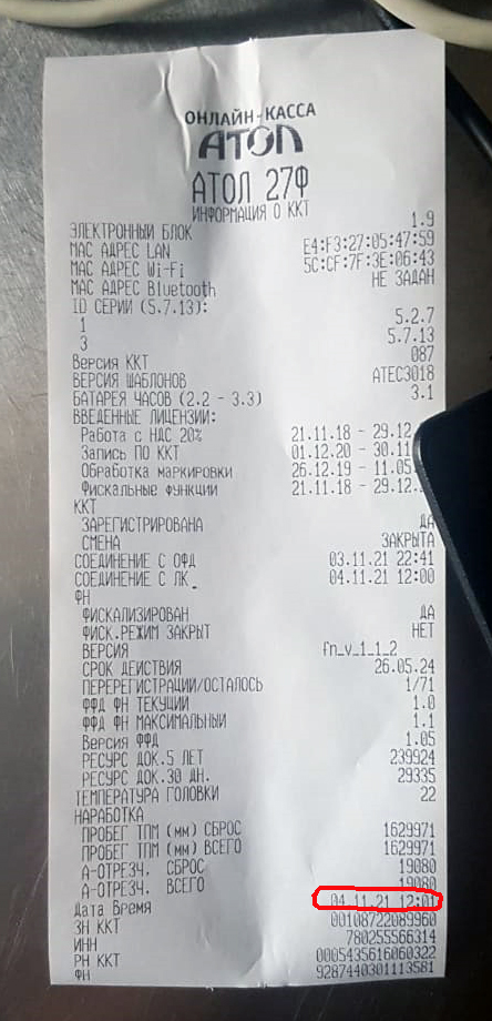 Создан , последнее изменение 07.04.2022У нас время на чеке отстает и не совпадает со временем на компьютере.
