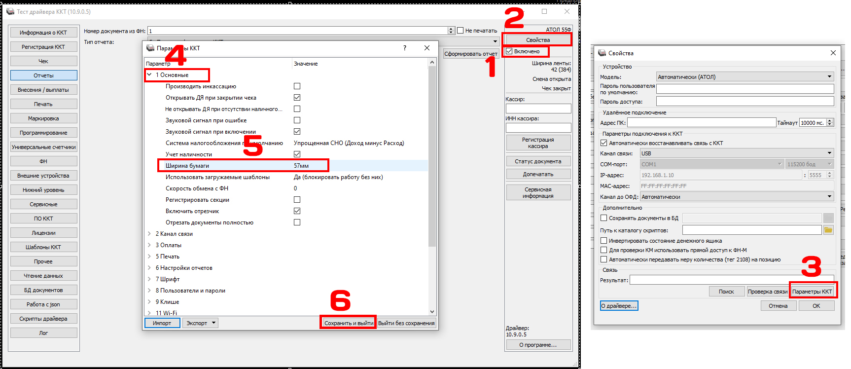 Необходимо открыть программу Атол Драйвер ККТ (скачать), подключиться к кассе (инструкция) и сделать следующее: