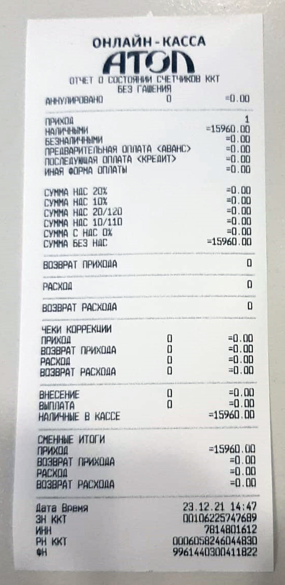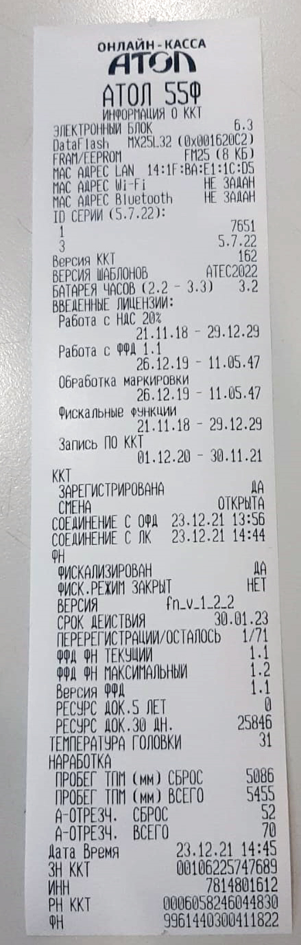Далее можно снять отчет информации о ККТ, чтобы проверить что все ОК: