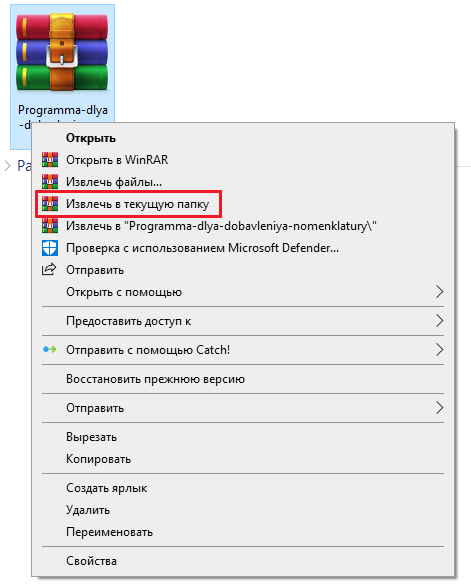 - Нажмите ПРАВОЙ клавишей мыши на файл с программой и выберите Извлечь в текущую папку.