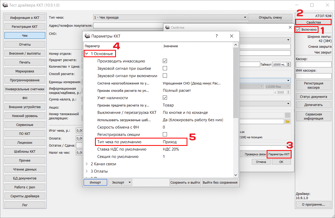 - откройте Атол Драйвер ККТ (скачать) и поставьте галочку на Включено;