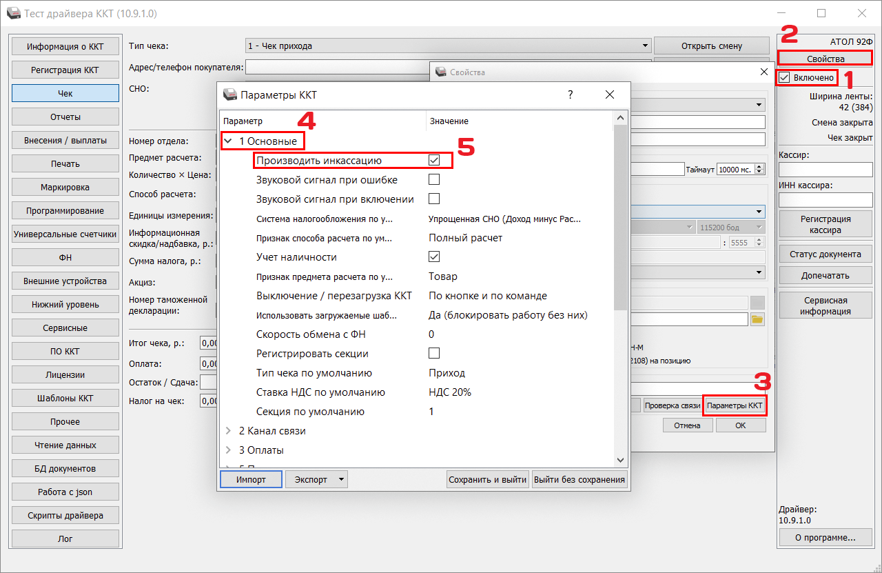 Создан , последнее изменение 08.07.2022Как на кассе Атол 91Ф и Атол 92Ф настроить автоматическую инкассацию после закрытия смены Z-отчетом.