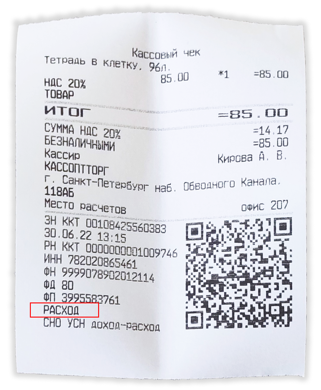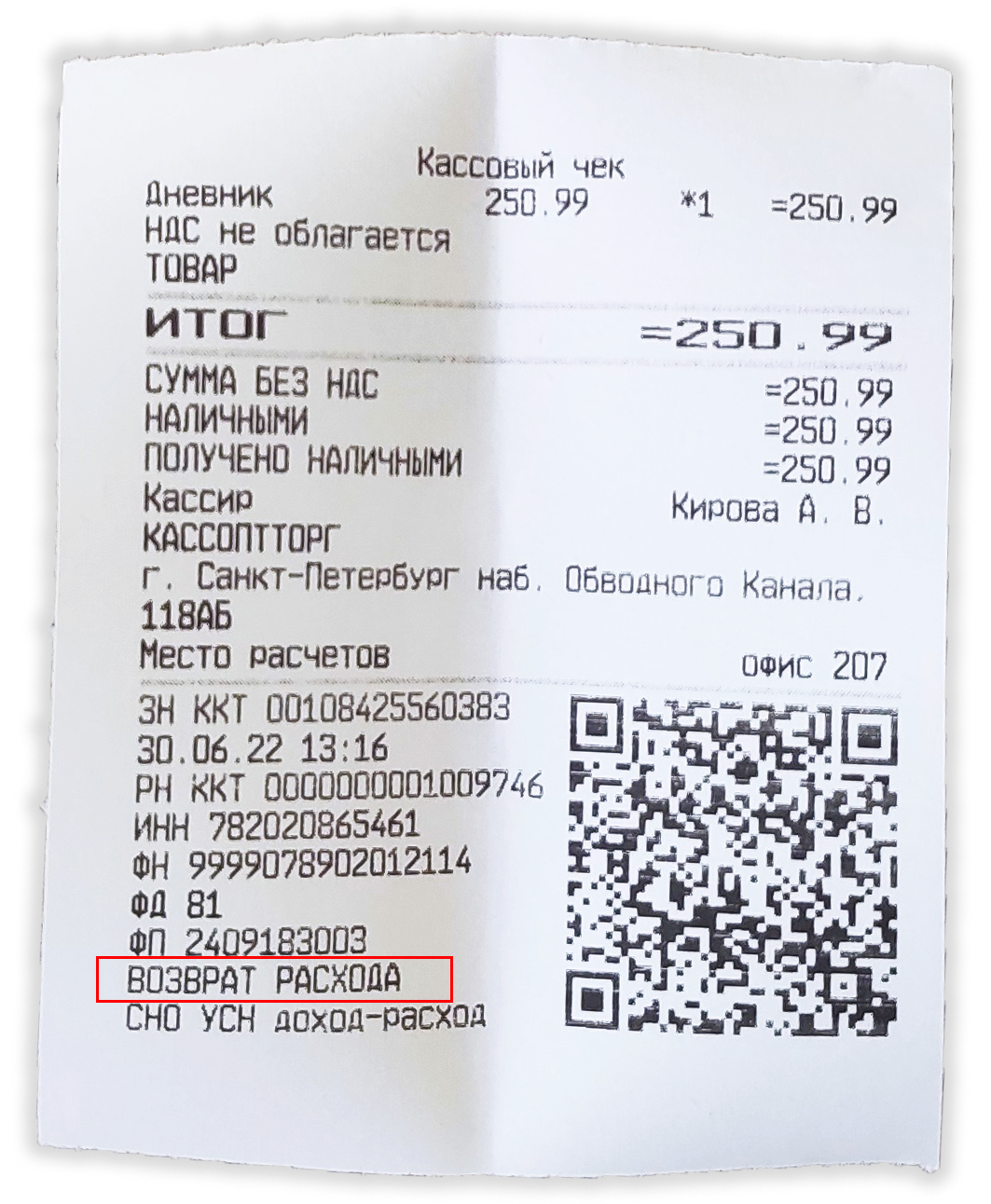 Чек РАСХОДА и ВОЗВРАТ РАСХОДА