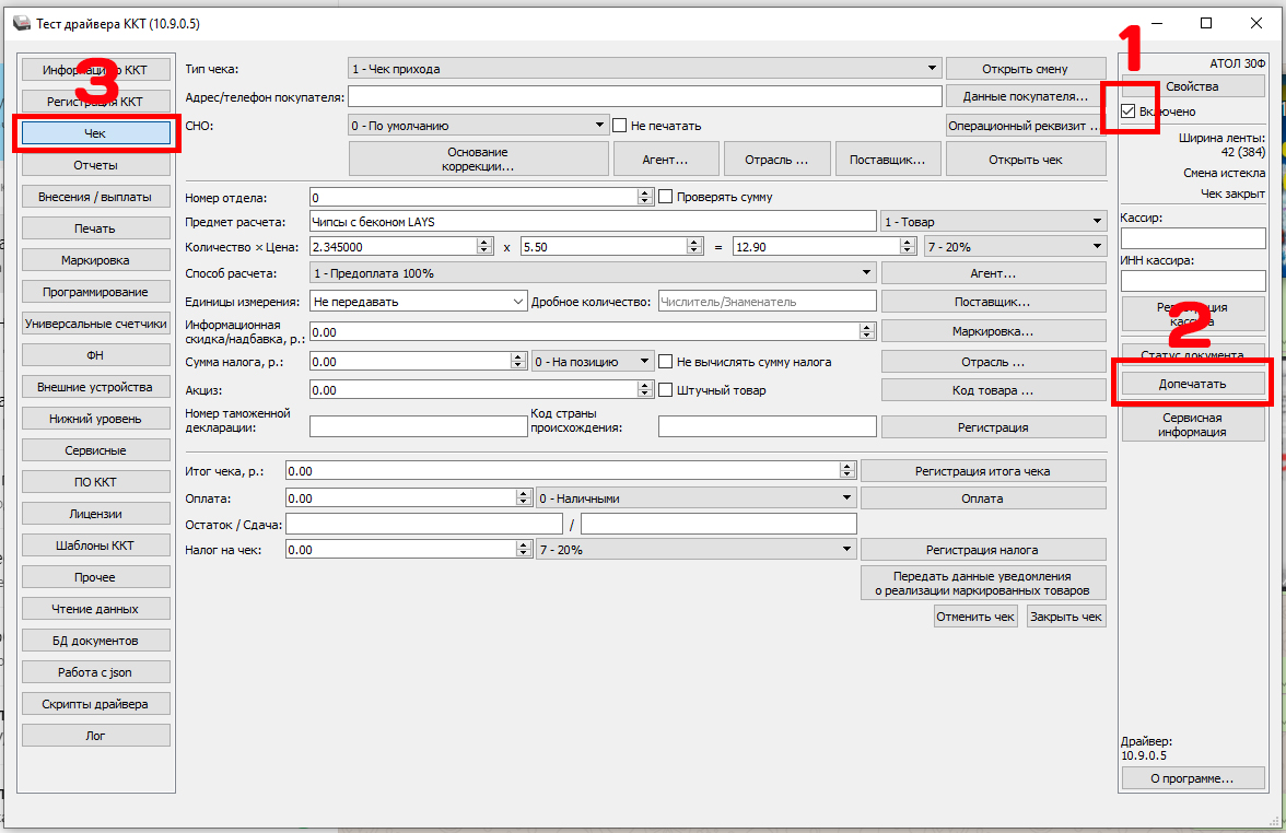 - теперь нужно закрыть чек, для этого нажмите кнопку ;