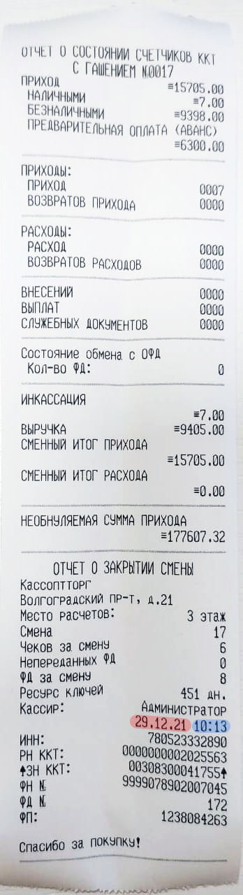 Как узнать дату и время последнего чека (ФД) в ФН