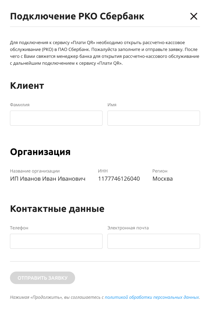 - Заполните все необходимые поля и нажмите Отправить заявку.