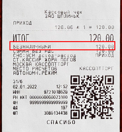 Как пробить чек по безналичному расчету