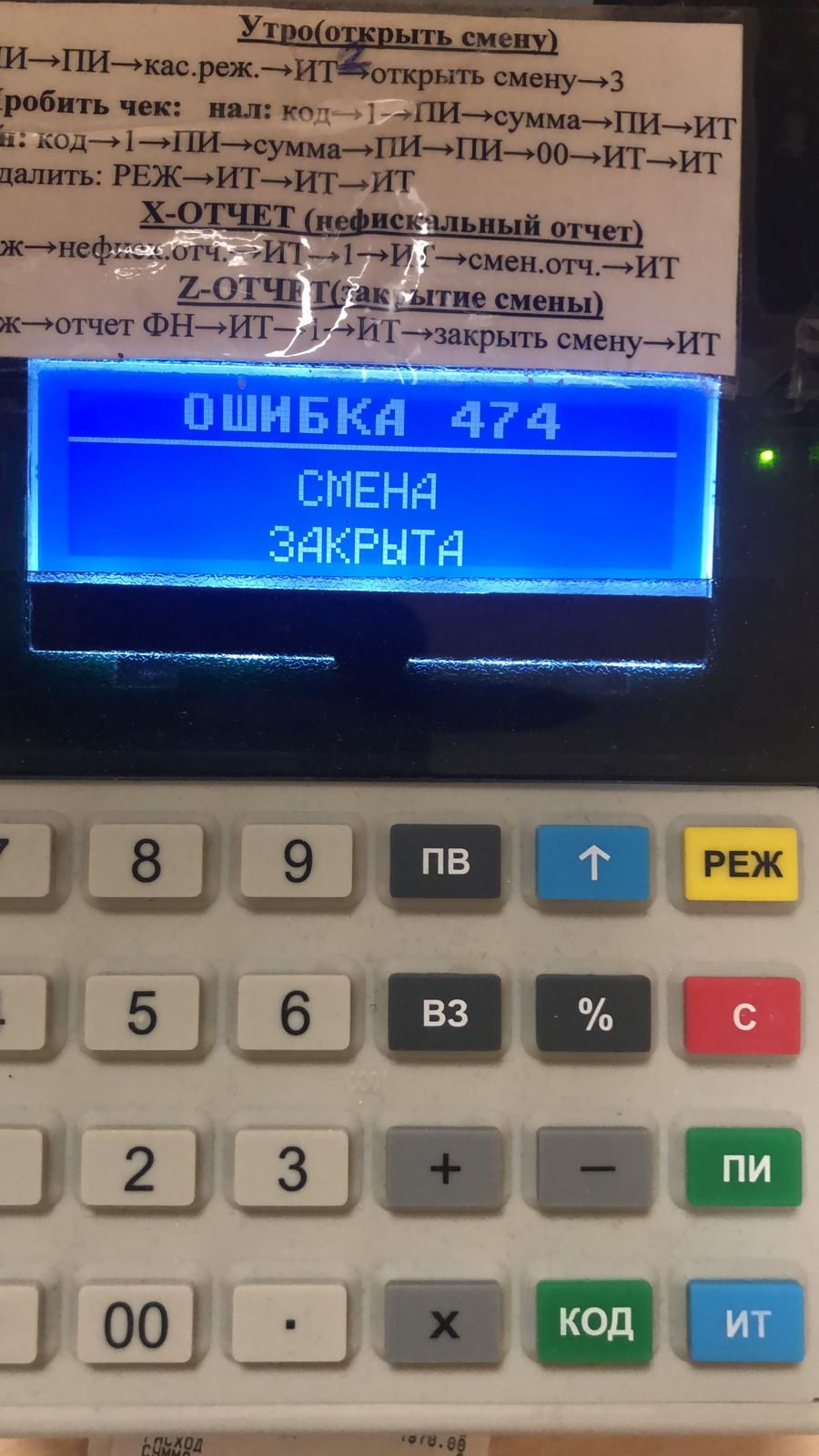 Как исправить ошибку ошибку 474 "смена закрыта"