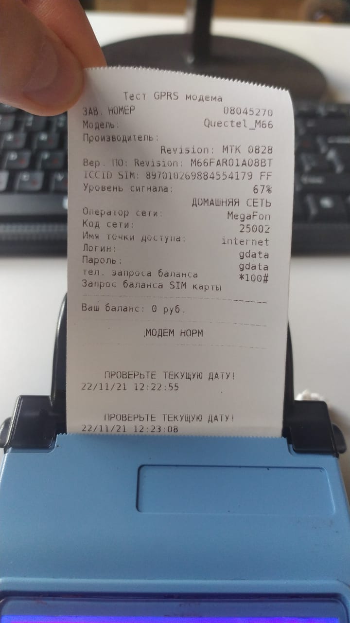 - Проверка SIM карты перенесена после тестирования модема и вывода информации на печать с тем что бы получить значение IMEI при отсутствующей SIM.