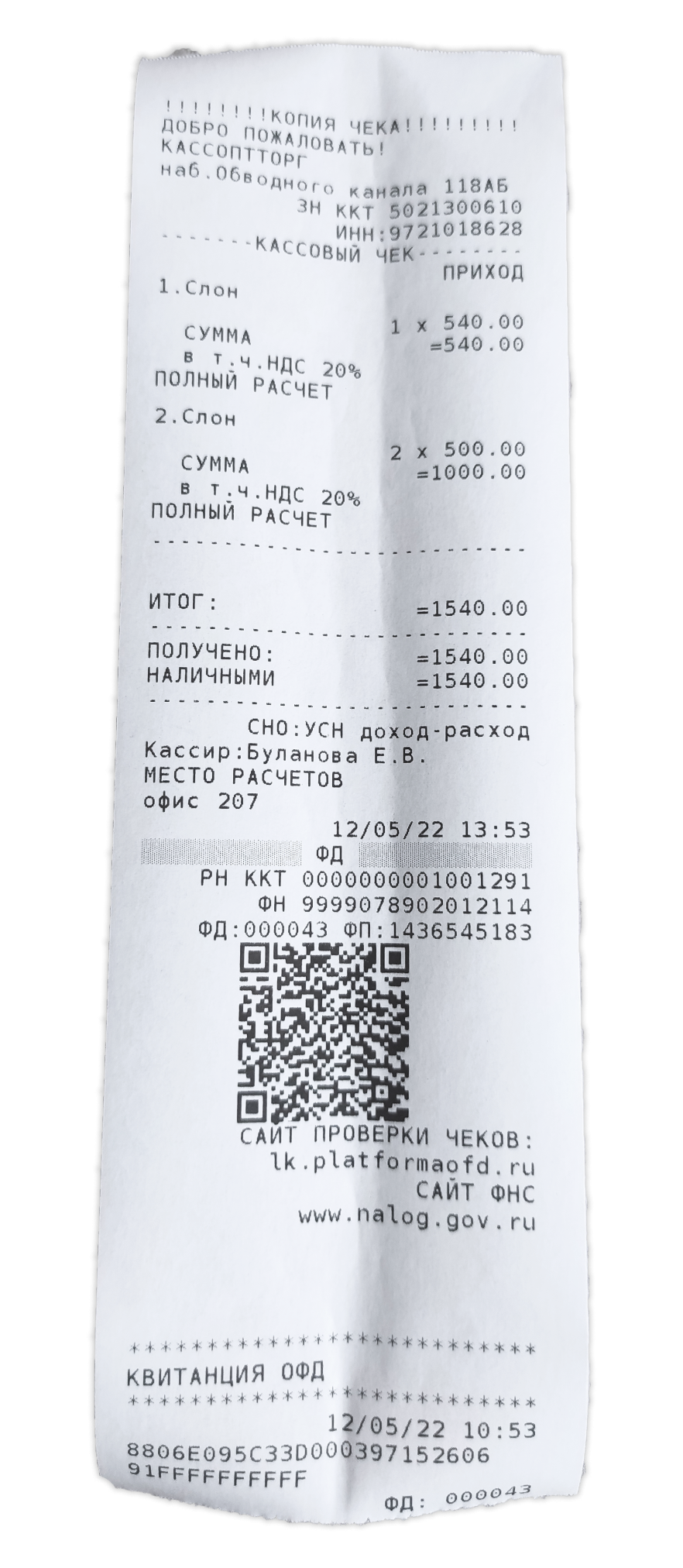 Создан , последнее изменение 13.05.2022Любой фискальный документ (чек) имеет оригинальный номер, по которому можно сформировать дубликат чека.