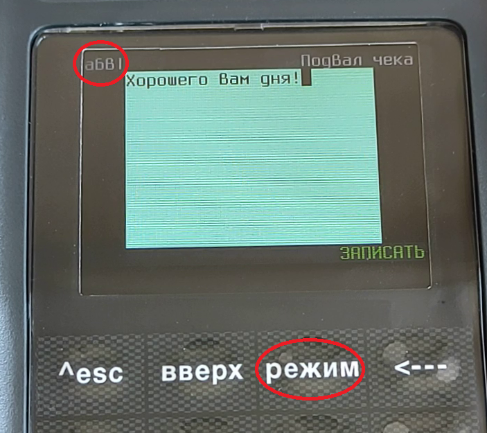 - кнопкой ВНИЗ дойдите до надписи Заголовок чека или Подвал чека (разделы программируется однотипно) и нажмите кнопку ВВОД;